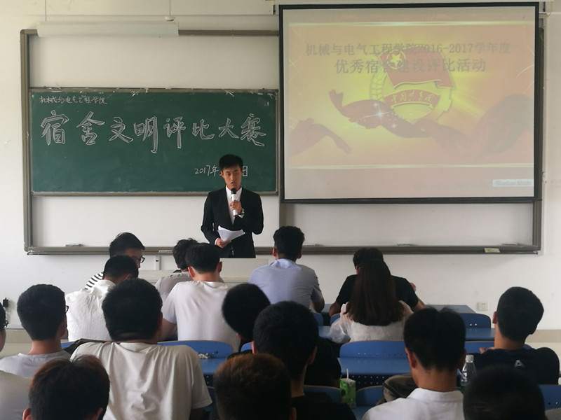 '; } else{ document.getElementById(PLTS[cur1].portletId).innerHTML=response; } } catch(e){} var regx=new RegExp(' 作者:程润民 摄影:王涵 审核:唐亮 上传:李媛 为进一步提高大学生综合素质,全面推进校园文明建设,努力提升大学生的思想品位、学术品位、道德水平。机械与电气工程学院于5月22日中午12:10在D405举行文明宿舍建设评比活动,团总支书记李媛老师和学生会主席刘成盟,副主席余学俊担任此次比赛评委。 活动在主持人孙焕宝精彩开场白下拉开帷幕,共有12个班级推出了优秀寝室参加了此次活动,接着由寝室代表上台讲解PPT,对自己的寝室进行介绍,其内容包括寝室家规和寝室文明建设,例如禁止深夜不归,禁止在寝室使用违规电器,不能损害寝室公共财物,不能在寝室大声喧哗,辱骂他人等。通过选手绘声绘色的讲解,深刻的把寝室文明印刻在各位同学脑海中。文明无小事,从你我做起。